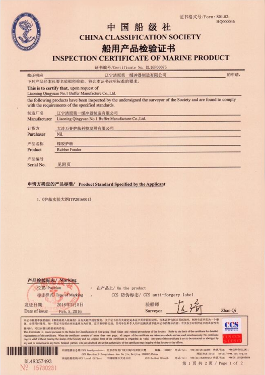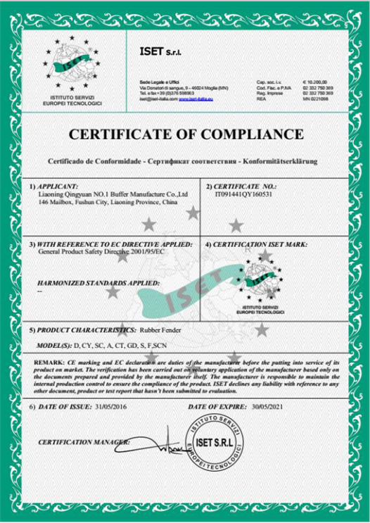 我們公司生產(chǎn)的緩沖器產(chǎn)品受到國(guó)際用戶(hù)的認(rèn)可,同時(shí)獲得CE 國(guó)際認(rèn)證證書(shū)、BV 國(guó)際檢測(cè)認(rèn)證、PIANC會(huì)員證書(shū)、中國(guó)船級(jí)社認(rèn)證證書(shū)、SGS國(guó)際認(rèn)證證書(shū)等。同時(shí),我們公司榮獲中國(guó)港口碼頭鏈商俱樂(lè)部會(huì)員、世界杰出華商協(xié)會(huì)會(huì)員、中國(guó)制造網(wǎng)認(rèn)證供應(yīng)商等榮譽(yù)。